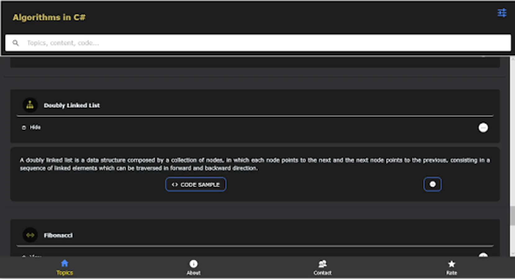 This aplication aims to be a basic and fast reference for algorithms in C# language.