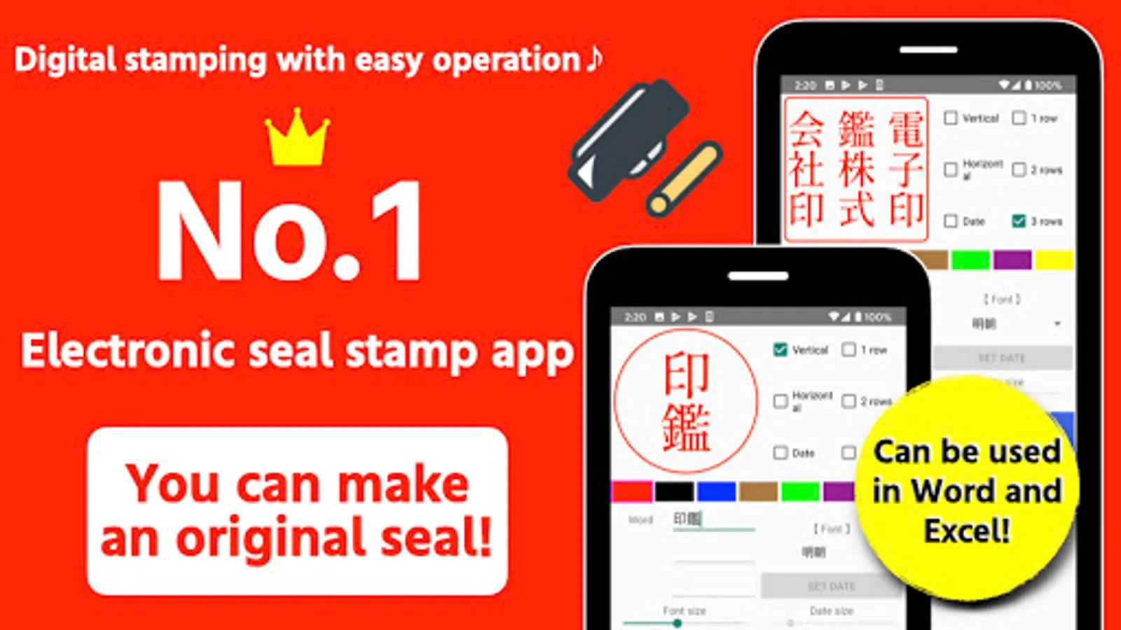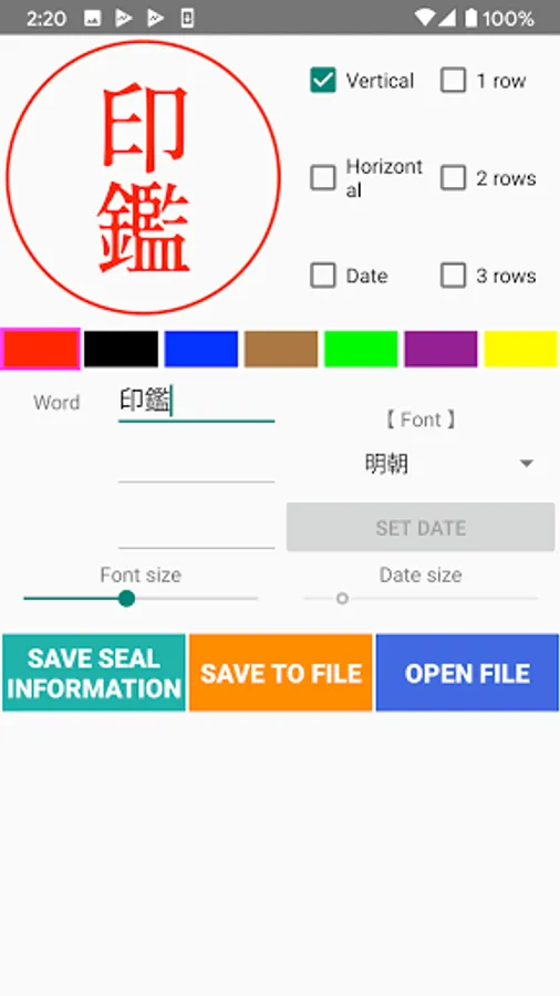 1. Select the type of stamp you want to create from 6 types: "Vertical", "Horizontal", "Date", "1 row", "2 rows", "3 rows" .