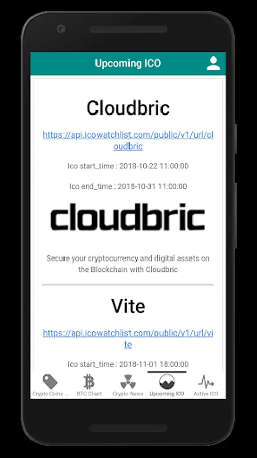 All material (data, content, images) are from public API. API For crypto price (api.coinmarketcap), crypto news (min-api.cryptocompare.com), bitcoin chart (api.coindesk.com), activeico and upcomingico (api.icowatchlist.com)