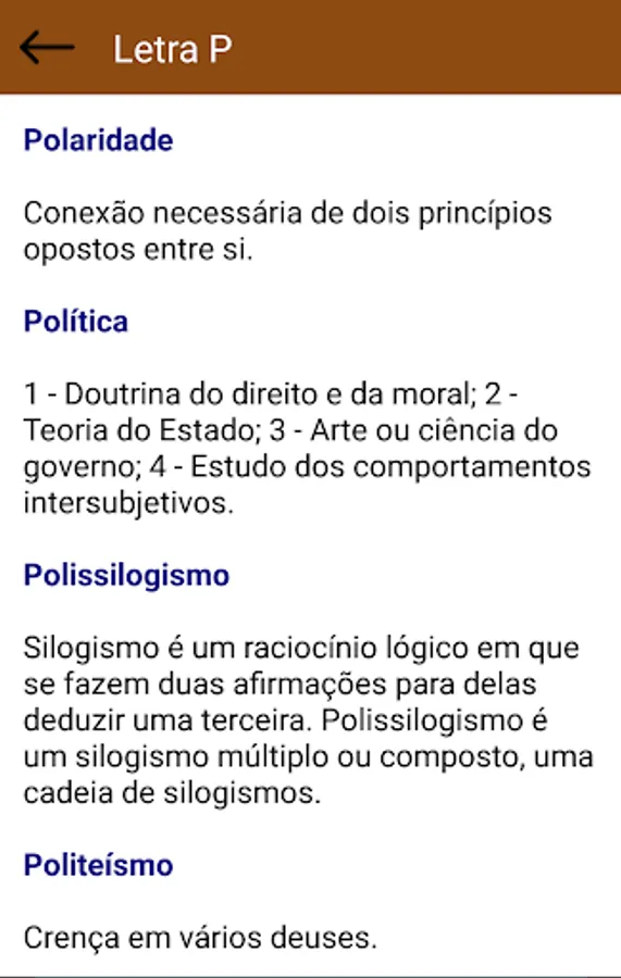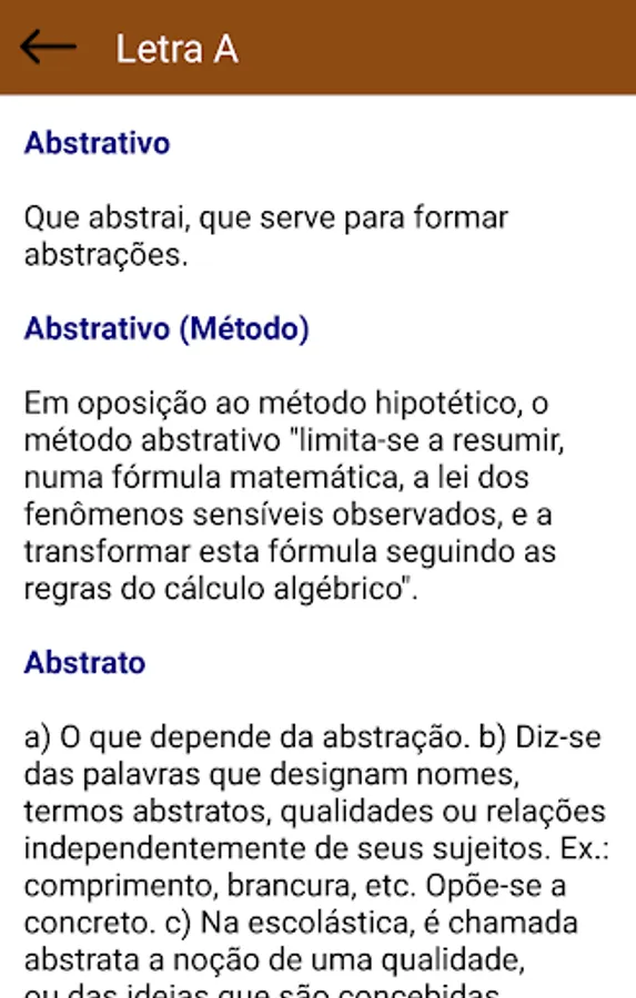 Discover many words about philosophy in this philosophical dictionary. Brief definition of the fundamental philosophical terms. Classified by letter to better search, you can easily learn and check all settings.