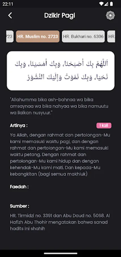 This application contains various dhikr that Muslims can practice in the morning and evening, of course dhikr is sourced from the Al-Quran and Hadith, equipped with audio dhikr to make it easier to read or memorize, besides that information on prayer schedules and Qibla directions is also available.