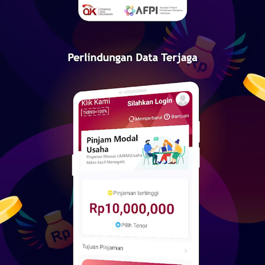 Klik Kami is an application for loans to all groups of Indonesian people - an easy process, without collateral, and unsecured credit. Click We are LICENSED and SUPERVISED by OJK (Financial Services Authority) as of 21 April 2021 with registration number