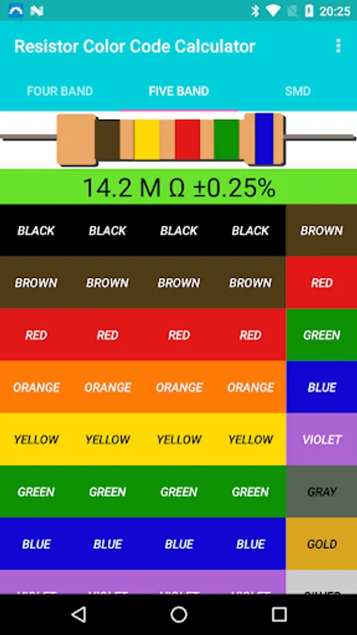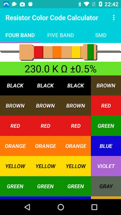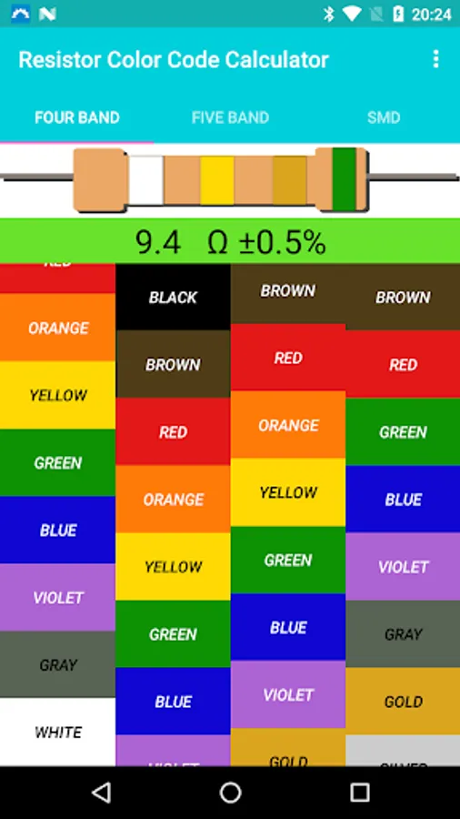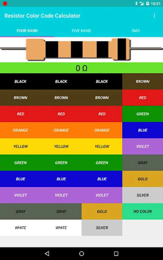 From this Application you can find the value of 4 band and 5 band resistor color code with tolerance value and also find the 3 digit,4 digit and EIA-96 standard SMD resistor code value.This Application specially developed for engineer,student,electronics tester and arduino or raspberry pi enthusiast when working with electronics.This Application can be helpful when you are working with electronics projects and testing of electronics.This Application supported upto 18 different county language like Afrikaans,Arabic,Bengali,German,Spanish,French,Hindi,Hebrew,Japanese,Koreans,Malay,Russian,Swedish,Turkish,Ukrainian,Urdu,Vietnamese and Chinese.