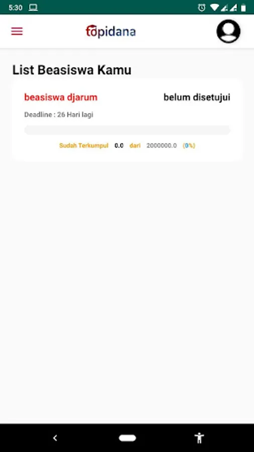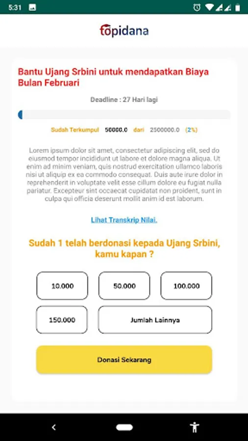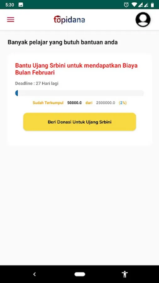 Topidana Is an application that is used to make a donation request for scholarship purposes for students who want to apply for a scholarship but have less money.