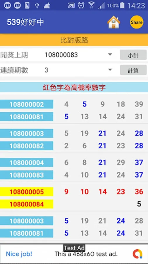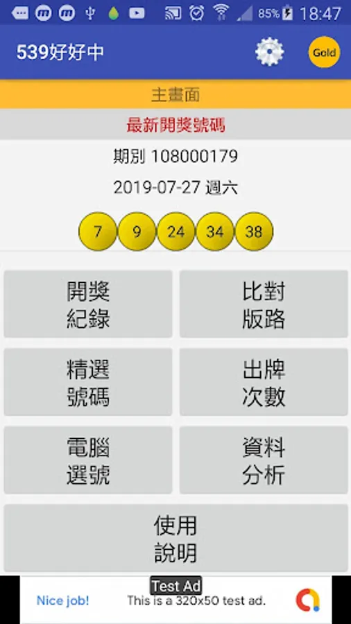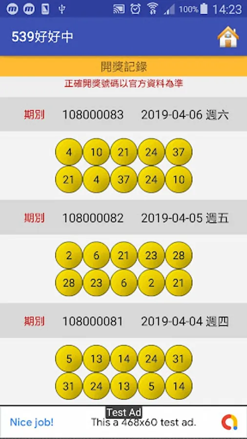 The first installation and use, enter the main screen will be automatically updated to the latest number of lottery data.