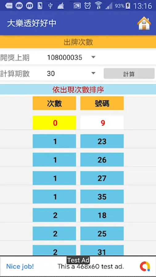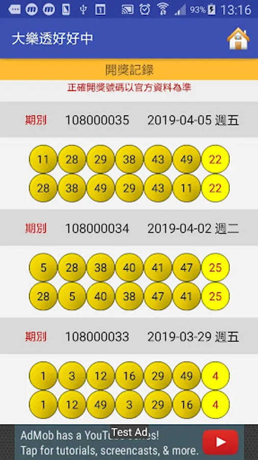The first installation and use, enter the main screen will be automatically updated to the latest number of lottery data.