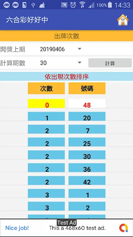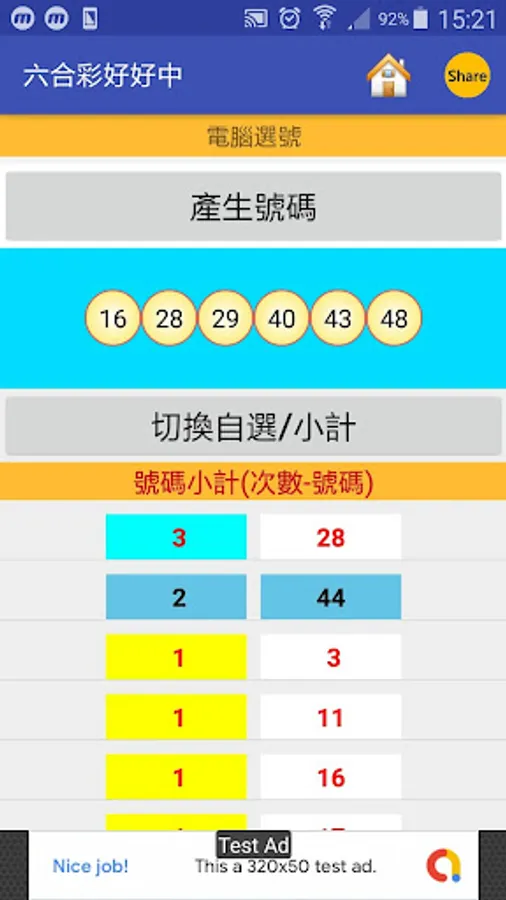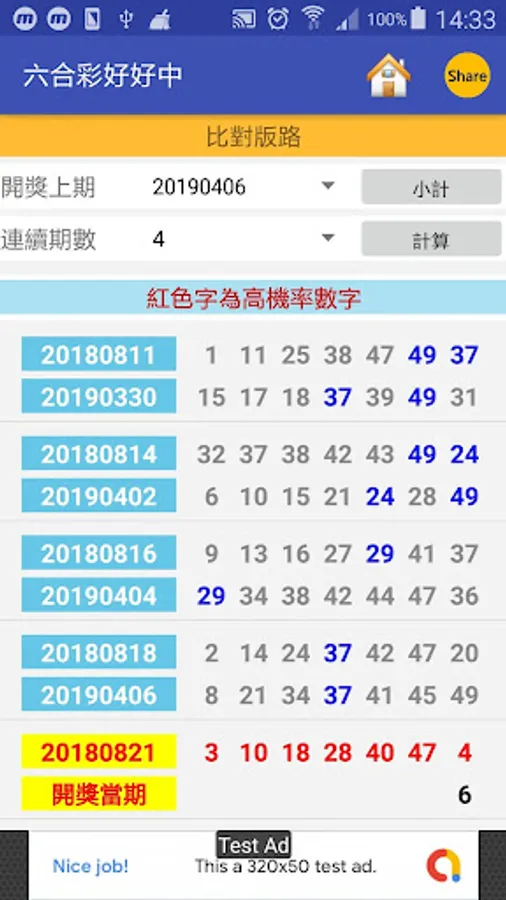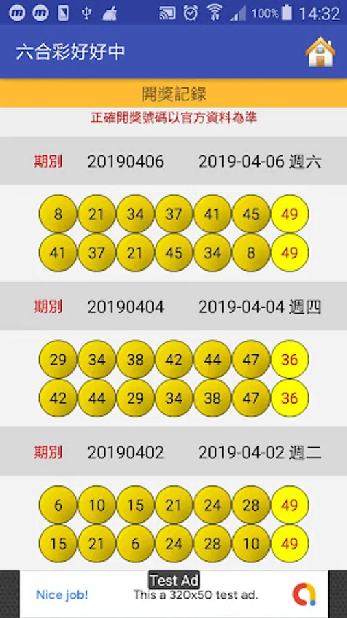 The first installation and use, enter the main screen will be automatically updated to the latest number of lottery data.