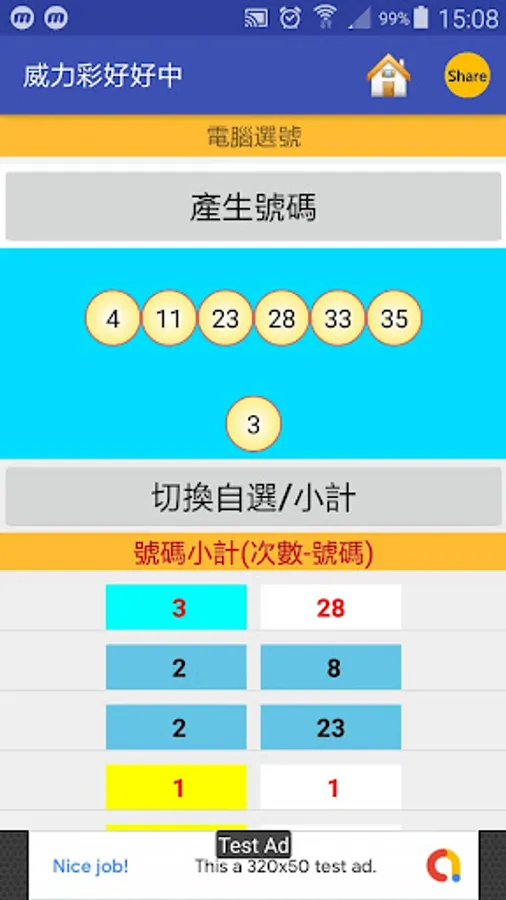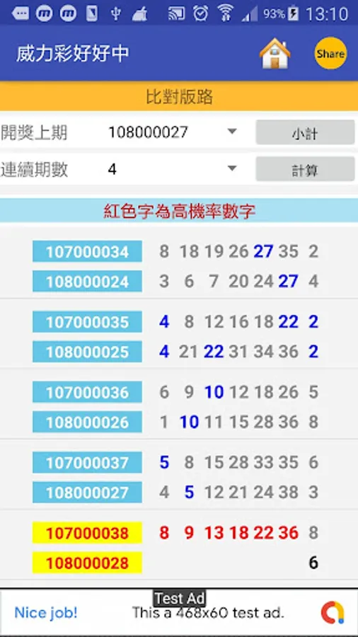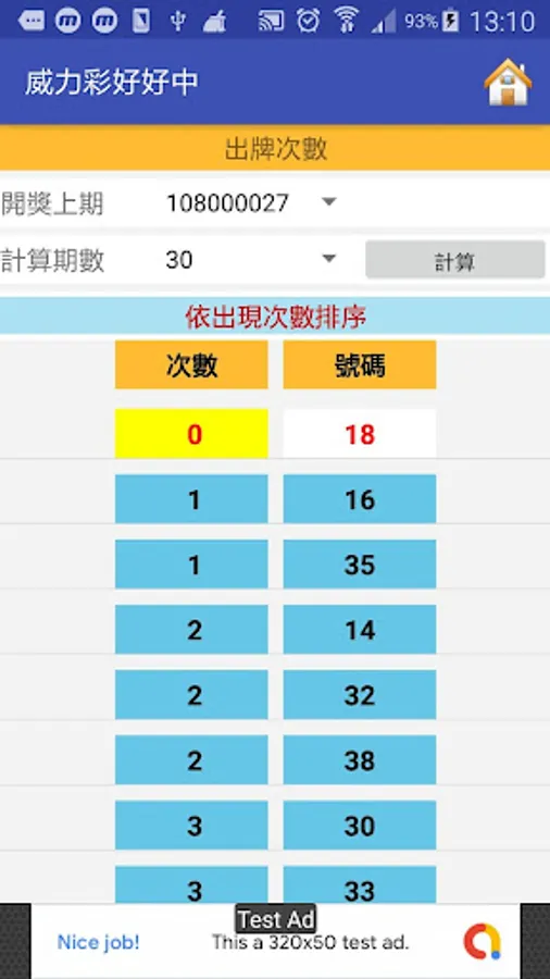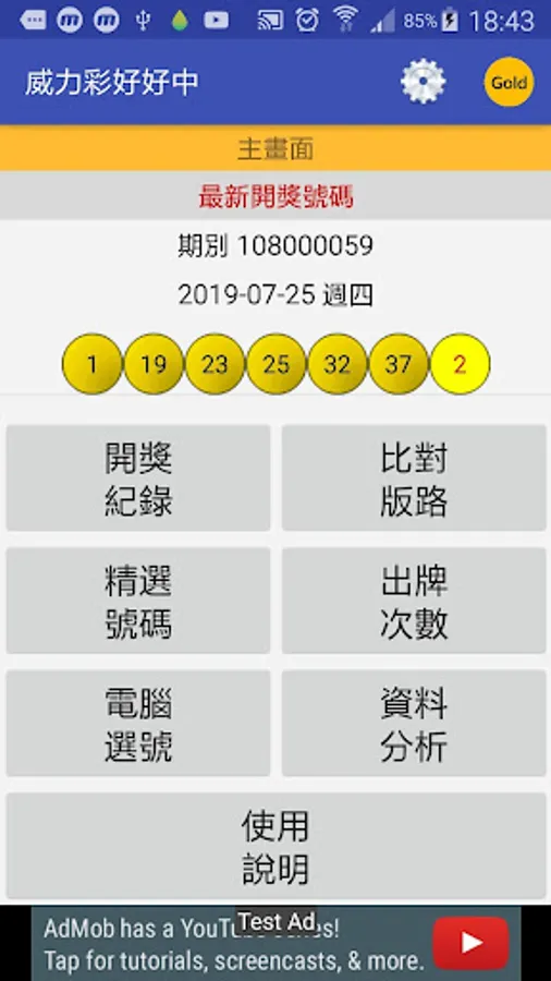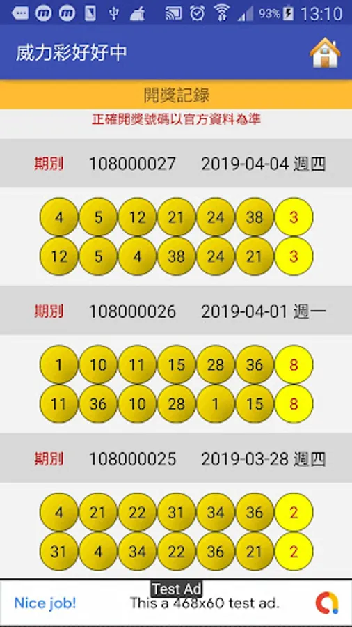 The first installation and use, enter the main screen will be automatically updated to the latest number of lottery data.