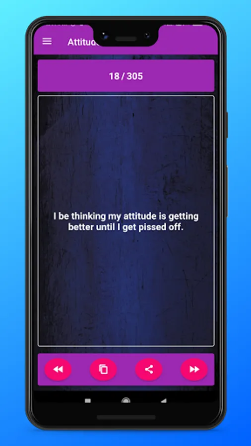 Hello guys here I m presenting you best collection of attitude status in English.This app is totally free of cost and completely offline app so no need of internet connection to use this app.