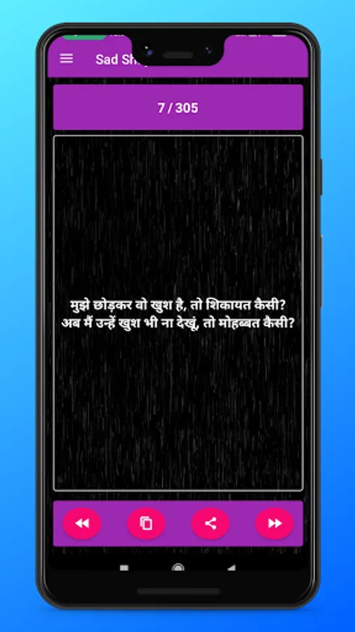 Hello shayari lovers if you are looking for an app for Sad Shayari & Status in Hindi then you are in right place. This is the best app and has great collection of Sad Shayari & Status.