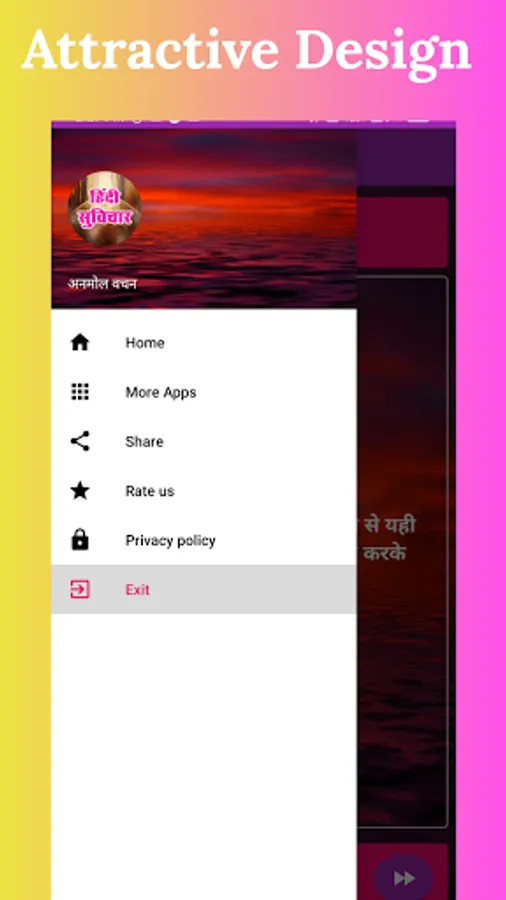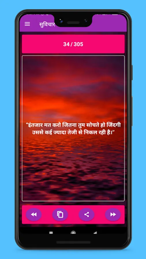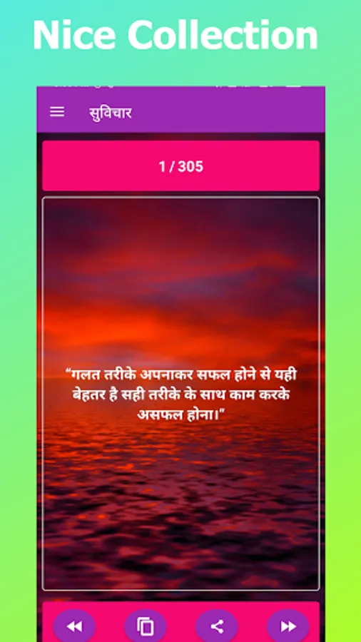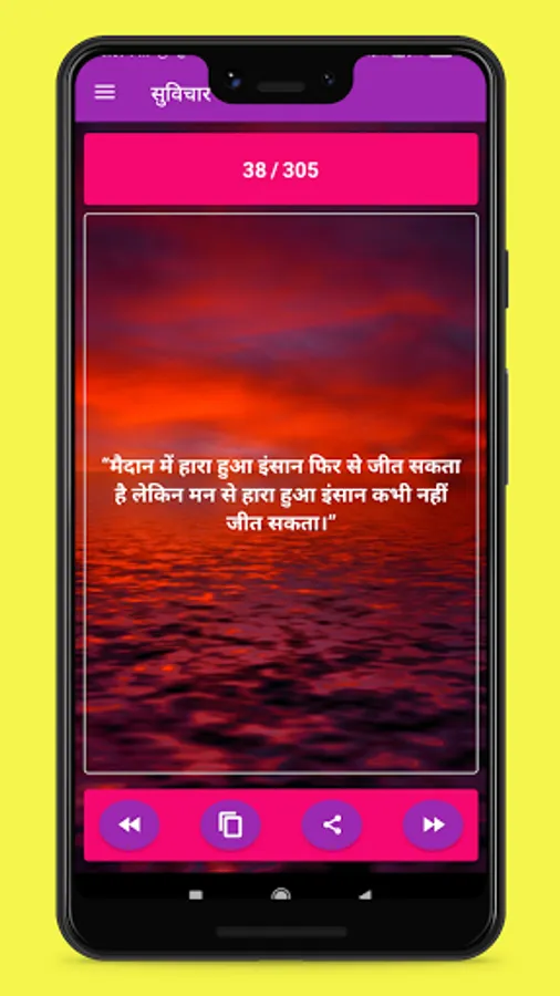 Hello shayari lovers if you are looking for an app to inspire yourself and others then you are in right place. This is the best app and has great collection of Hindi Motivational Quotes, हिंदी सुविचार.