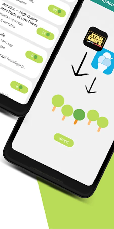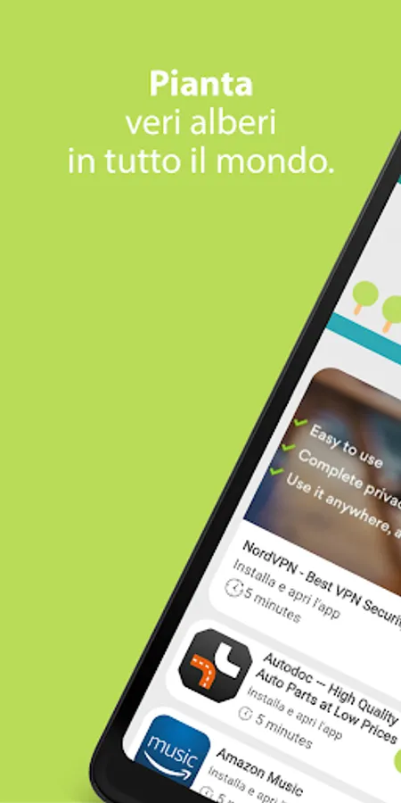 Explore a world of free applications and video games and download your favorite ones. For each app you download and for each mission you complete, we will plant one or more trees. That's right, you can help the ecosystem too without spending a euro.