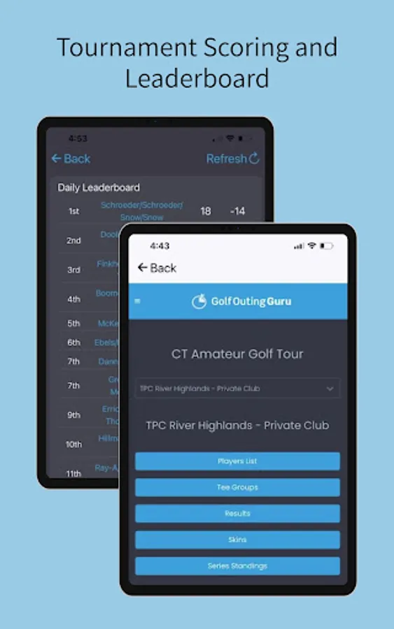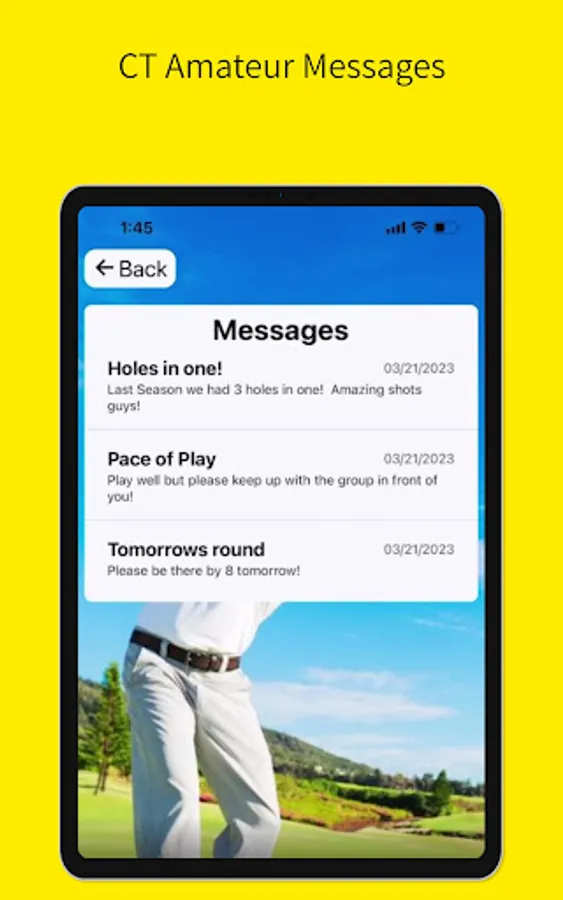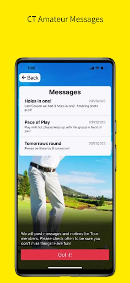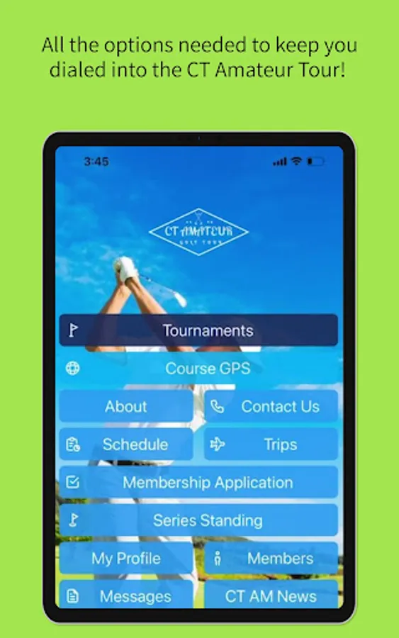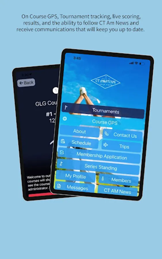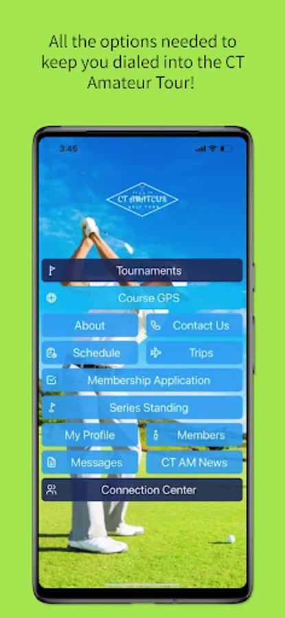 The CT am app will help tour members navigate thru the season. It includes Tournament tracking, live scoring, results, and the ability to follow CT Am News and receive communications that will keep you up to date. Have a question? Use the app to reach out to us!