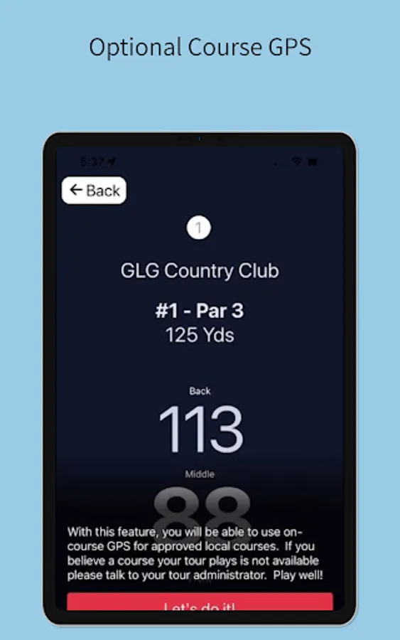 Thanks for downloading the app! You can now be notified of our tour activities and upcoming activity, use GPS on certain local courses, sign up for future tournaments, view results of past events, sign up for memberships, follow the LVL News, and much more!
