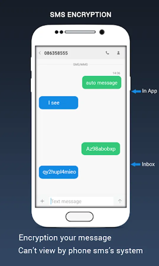 ☆ Encrypt SMS : The content will be encrypted, in inbox of phone display only unreadable text. Only you and receiver could see it in our application.