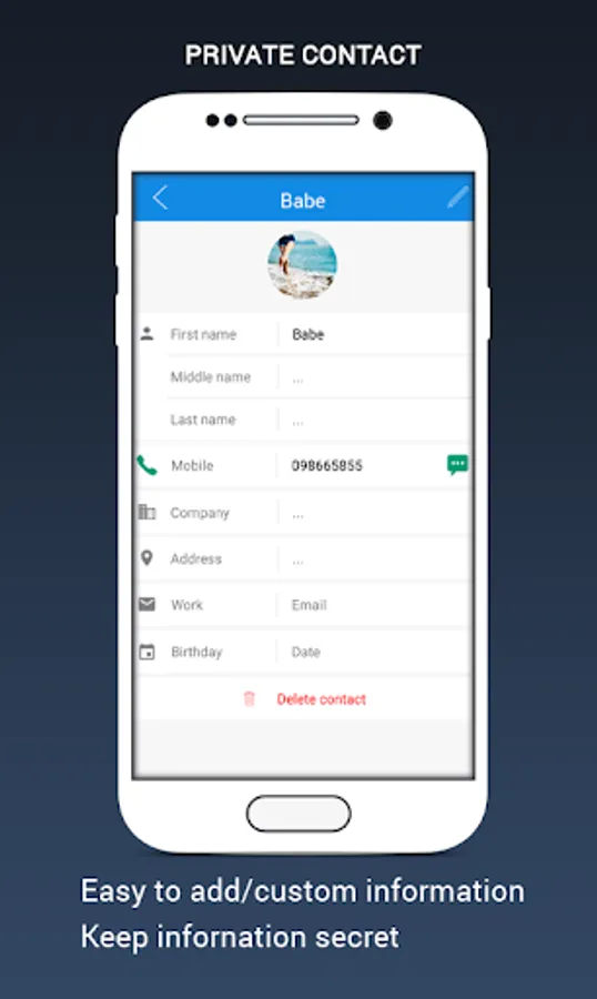 ☆ Private Contact: Put the contact you don't want to share to anyone here. Then you could be make call, send message in secret way.