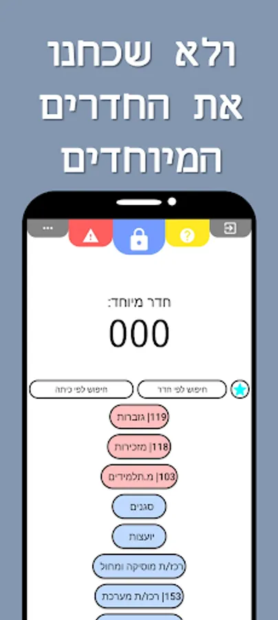 • Search for special rooms in high school - for example treasurers and coordinators' rooms