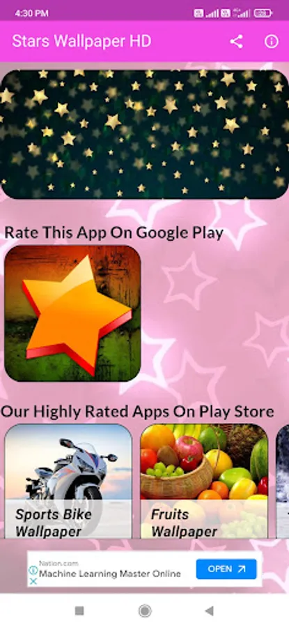 Are you looking for shining stars Images? if yes then you are in right place Stars Wallpaper HD application brings you cute and Adorable Amazing “Stars Wallpaper” for free. The stars are so bright and colorful that they will illuminate the screen like never before. Download Stars Wallpaper HD and let lovely “star images” which will feel you happy when ever you uses your smart devices. Stars Wallpaper HD Application inspired with stars bring color, character and detail to a screen with exciting new look for your phone, easier and quicker then ever. Do kindly check all screenshots of Stars Wallpaper HD application given below to know how your device will look like. Set your favorite Stars Wallpaper HD as your home screen background and lock screen. After setting this as wallpaper,that specific Stars Wallpaper HD HD get directly saved in memory card you don’t need to put extra efforts to save this wallpapers. All the backgrounds of Stars Wallpaper HD are of HD quality. Share it with your friends. Enjoy the App and please rate us. Feedback is welcome.