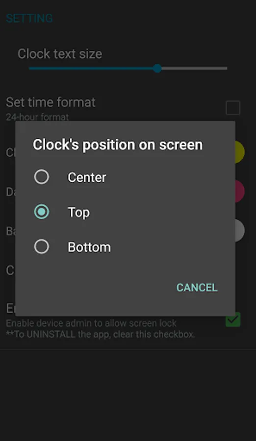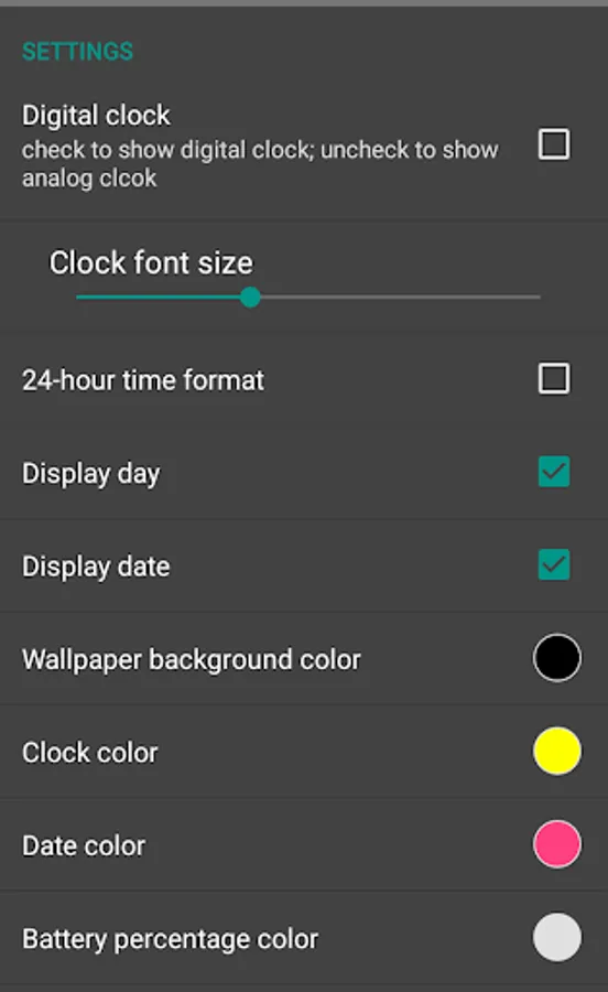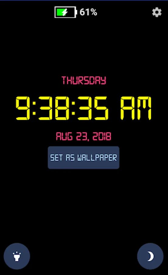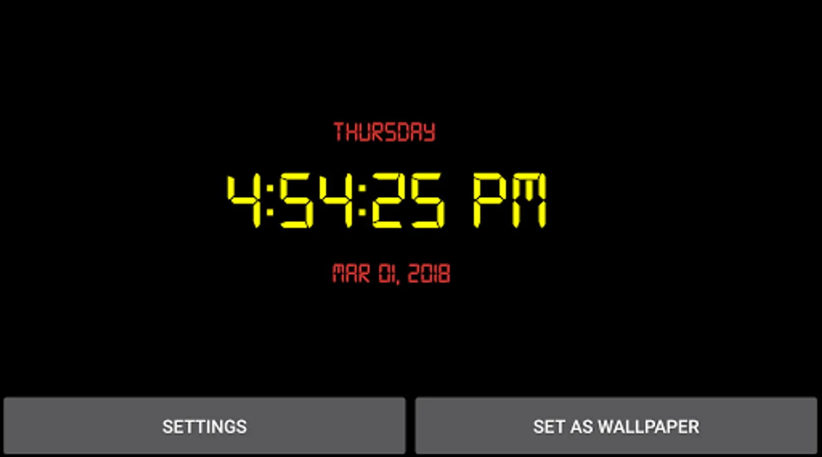 Digital Clock Live Wallpaper is simple and easy to use app. It support both digital and analog types of clock. You can customize time format, change time, date, and wallpaper background colors , move clock around your screen (top, center, and bottom), and increase or decrease text size of the clock.