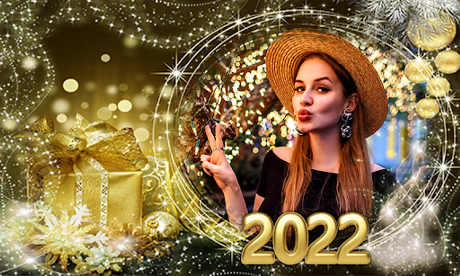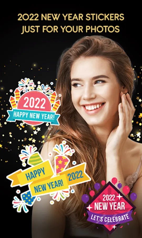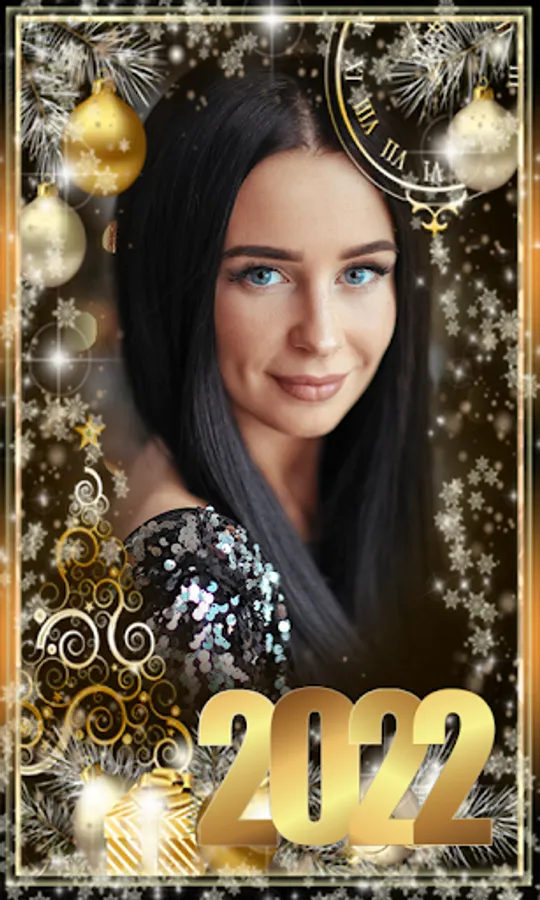 2022 New Year Photo Frame Editor. It is all you need to make your photos festive. Wide selection of New Year photo frame for 2022. Capture and frame all your New Year celebrations and memories photos with New Year stickers to personalize your pictures.