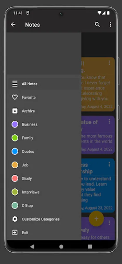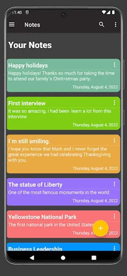 This notebook can categorize notes into different colors. Manage notes with 12 pre-defined beautiful colors. Notes also provides an unlimited favorite color.