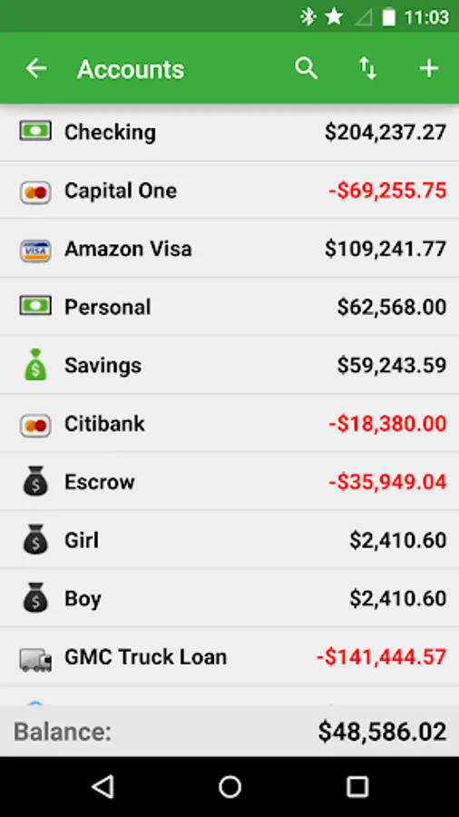 I created this application with intention of using it myself because I have yet to find a financial application that I found visually appealing and easy to use on Android. Everything I've encountered to this point is just plain and boring. This app allows you to customize the main color of the app with a color picker that has infinite color possibilities! Don't get stuck with just black and white like other apps, give this a try. Change the color to fit your mood for the day. It's not hard and takes no time at all.