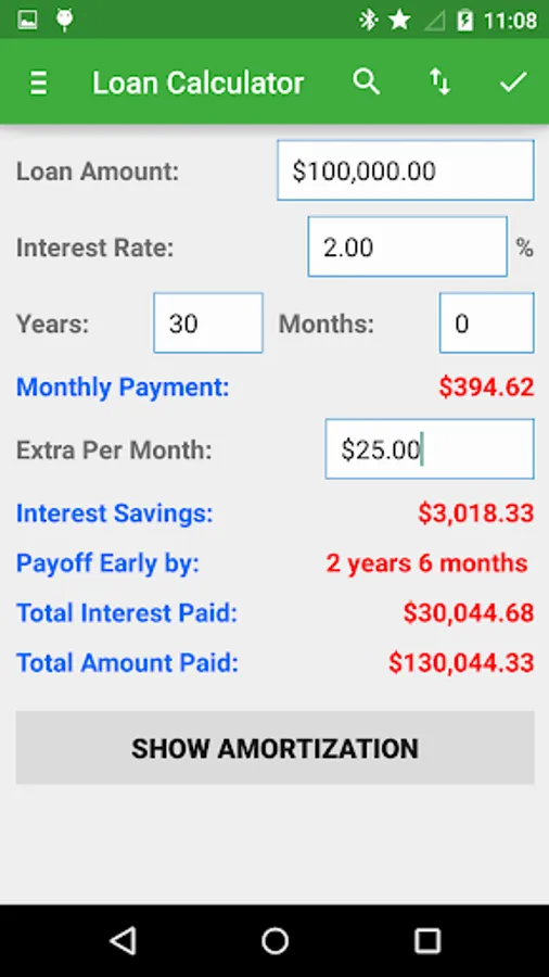 - Loan Amortization Calculator with display of all monthly payments and interest for each payment.