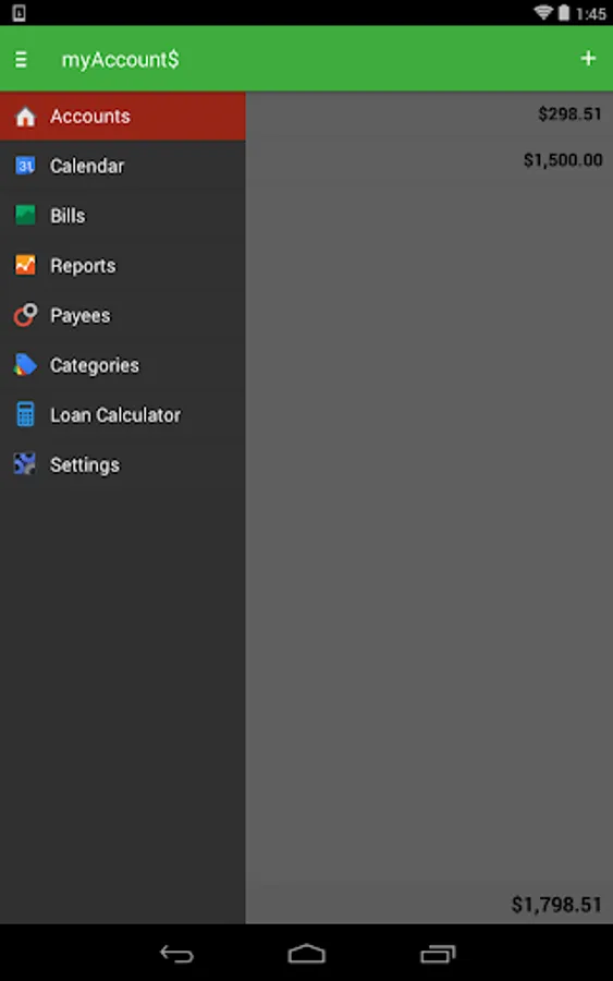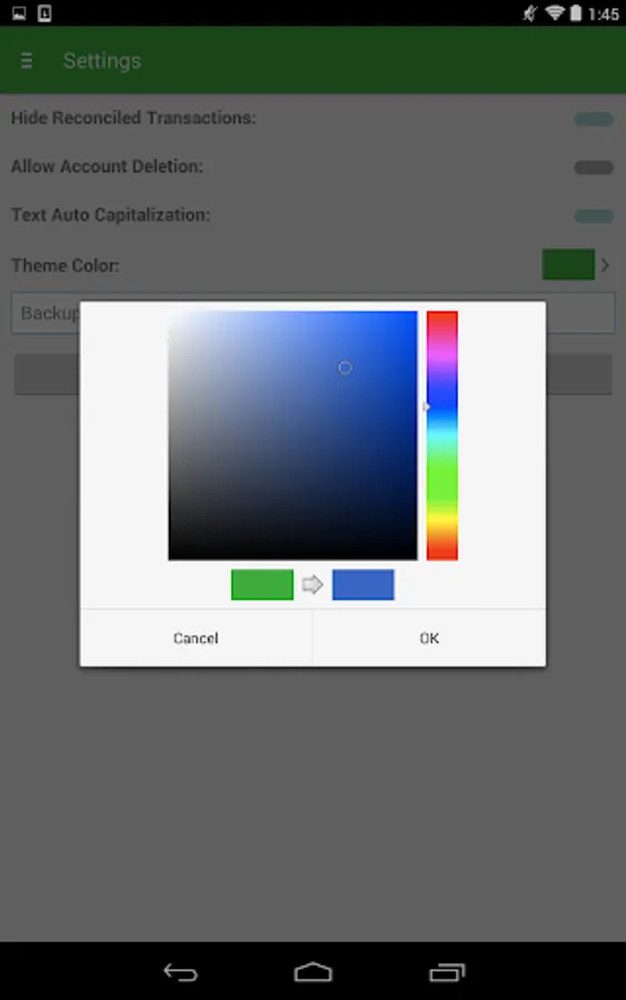 I created this application with intention of using it myself because I have yet to find a financial application that I found visually appealing and easy to use on Android. Everything I've encountered to this point is just plain and boring. This app allows you to customize the main color of the app with a color picker that has infinite color possibilities! Don't get stuck with just black and white like other apps, give this a try. Change the color to fit your mood for the day. It's not hard and takes no time at all.