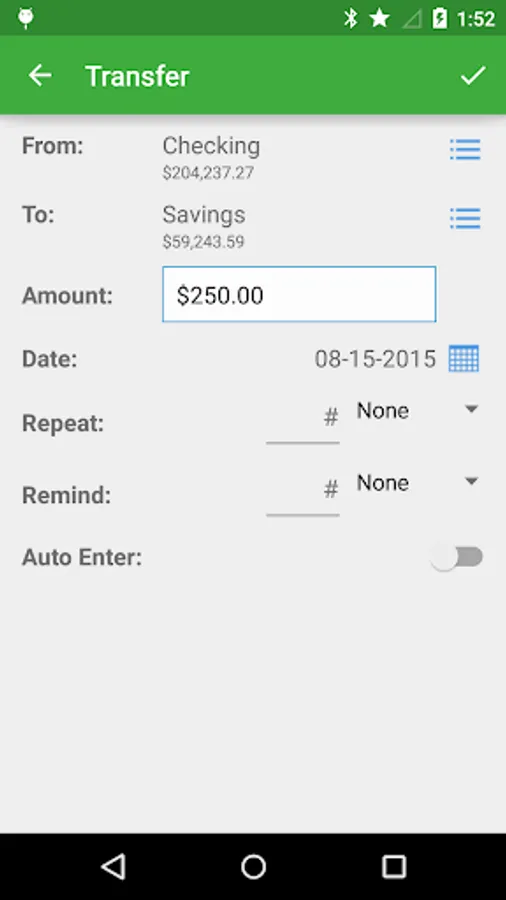 - Transferring money between accounts keeps the transactions in sync. If you change one, the other "linked" transaction updates to match.