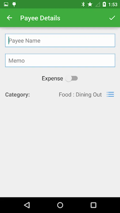 - Searching by payee name, transaction amount, memo field and category. Search results will be all transactions that match the specified search value.
