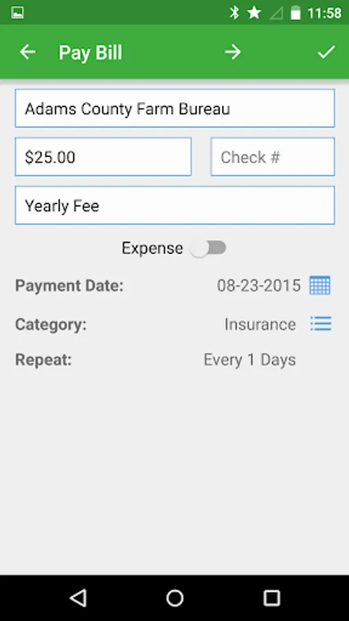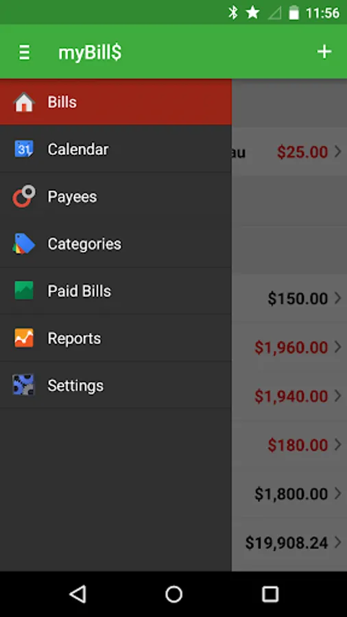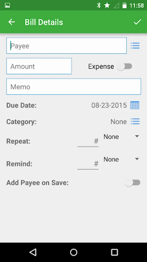 - Daily bill reminder screen helps you remember that bills are coming due and need to be paid.