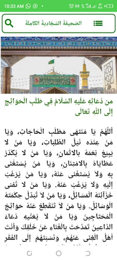 Sahifa Al- sajjadiyah is a collection of heart-touching supplications of Imam Ali ibn Hussain Zainul-Abideen (a.s), the fourth Shi'a Imam. The book is a combination of Islamic Knowledge of different fields infused in it and taught in supplication form.