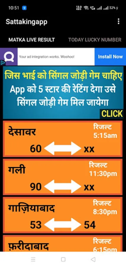 Dear Friends, Welcome to Satta King Single Jodi App. Here you will get fastest Desawar, Faridavad, Gajiyabad and Gali Khabar in Hindi. With daily single Jodi fix number for all games. Khabar timetable, single Jodi and fix jodi are given below in detailed.