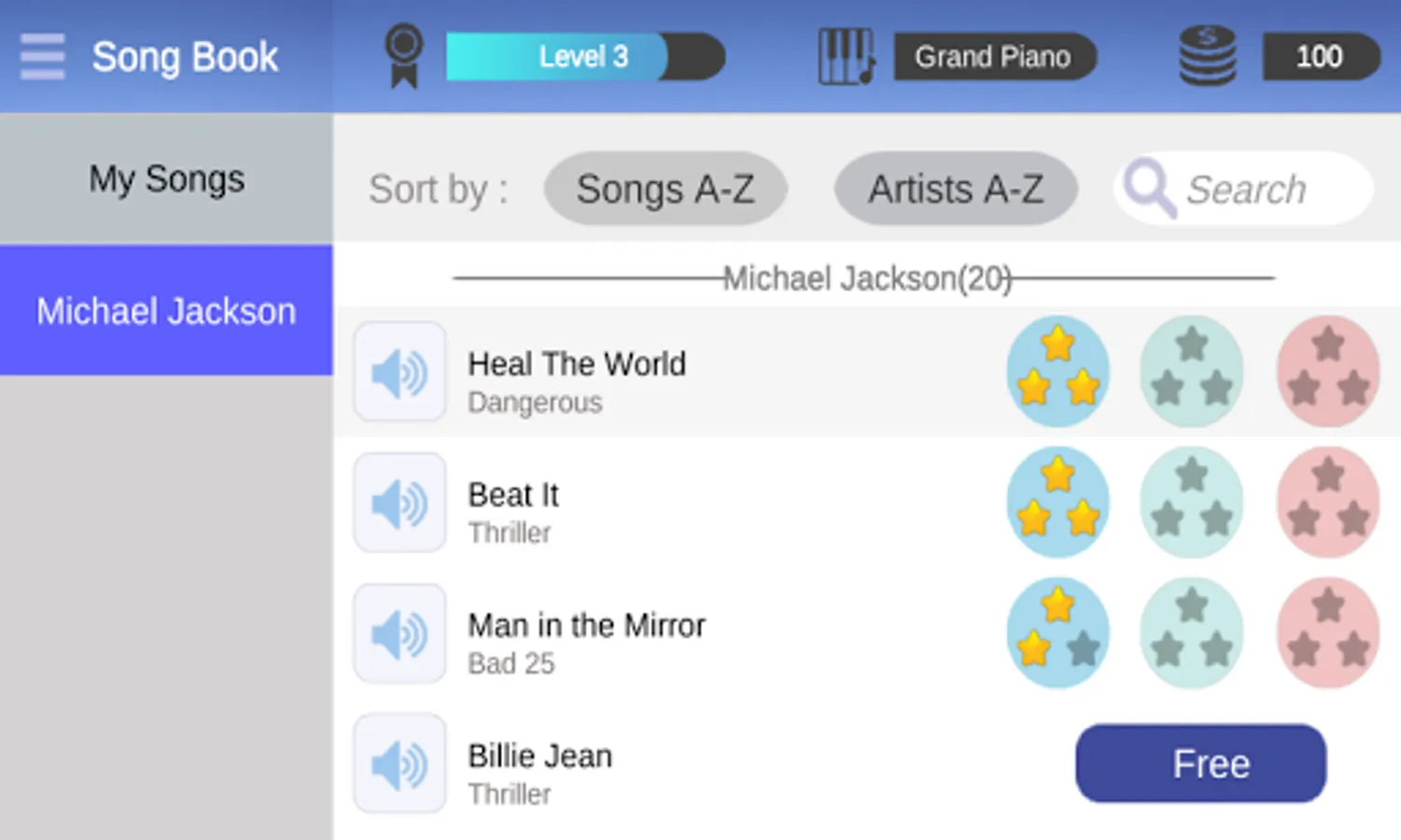 Play and enjoy Michael Jackson classic piano pieces by tapping your fingers.