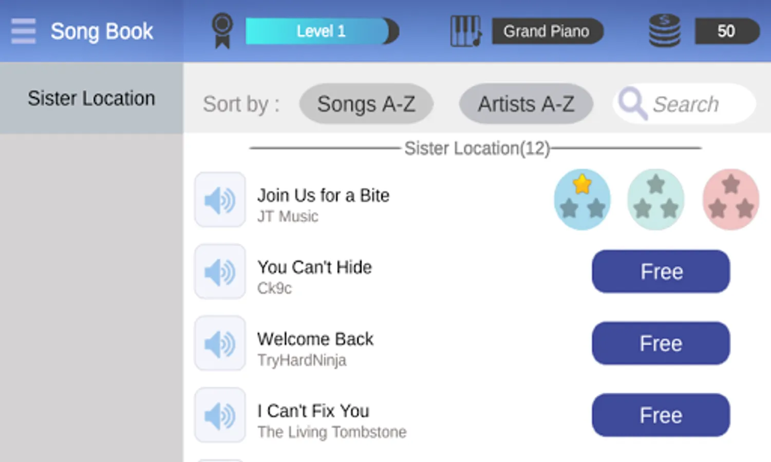 Songs collection in piano tiles sister location :