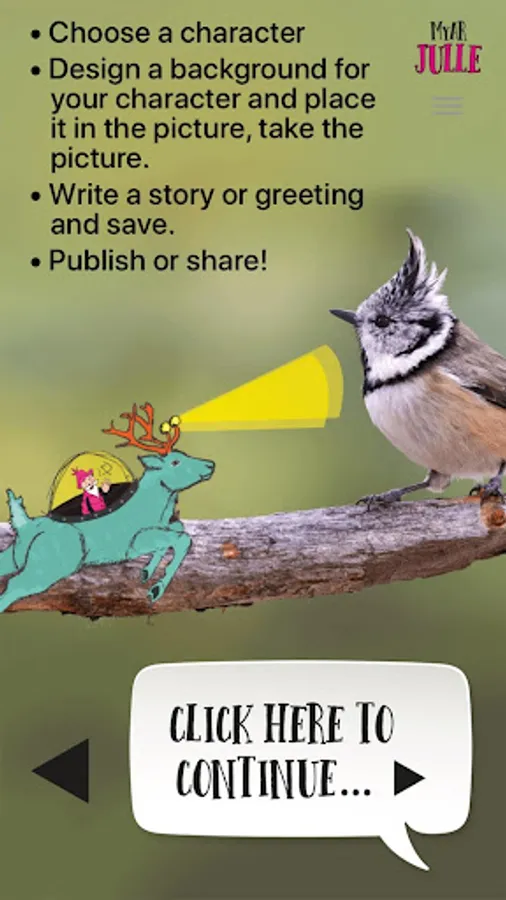 MyAR Julle opens the door to the world of storytelling. In MyAR Julle, you choose one of the lovely Julle characters and you will be able to tell your own Julle story.