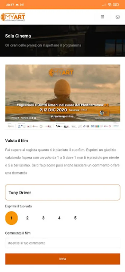 MyArt 2021 is the application of the International Film Festival on human rights. It collects the files of the documentaries and short films of the works in competition. It allows viewing and voting of the works, as well as being able to comment on the work itself. The application is completely free and just to watch the movies in streaming requires a simple registration.