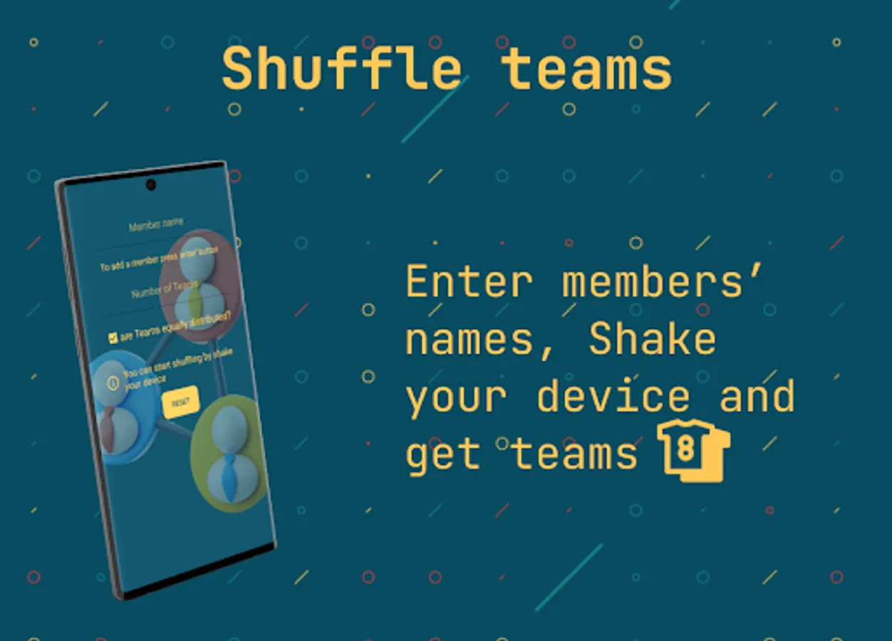 Shuffler is an application used to shuffle members and distribute them into teams randomly. and also can form a league and manage it.