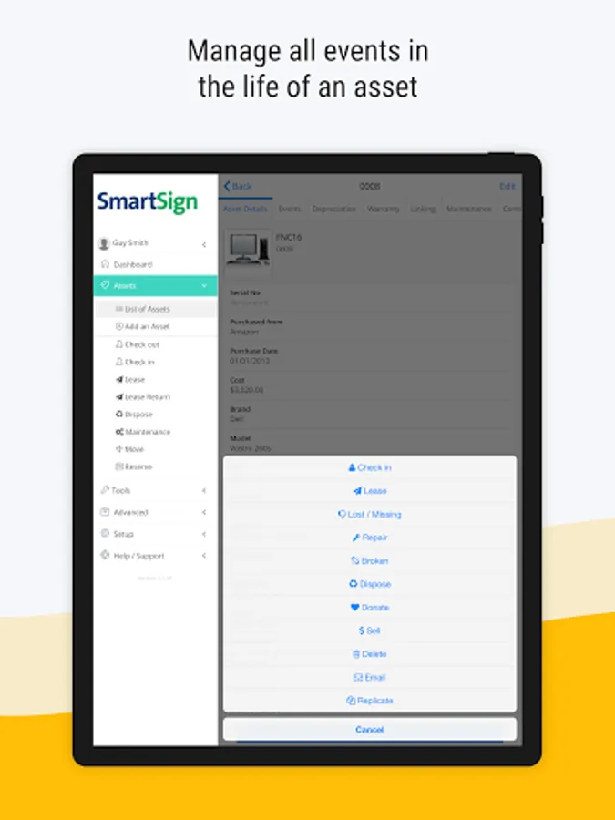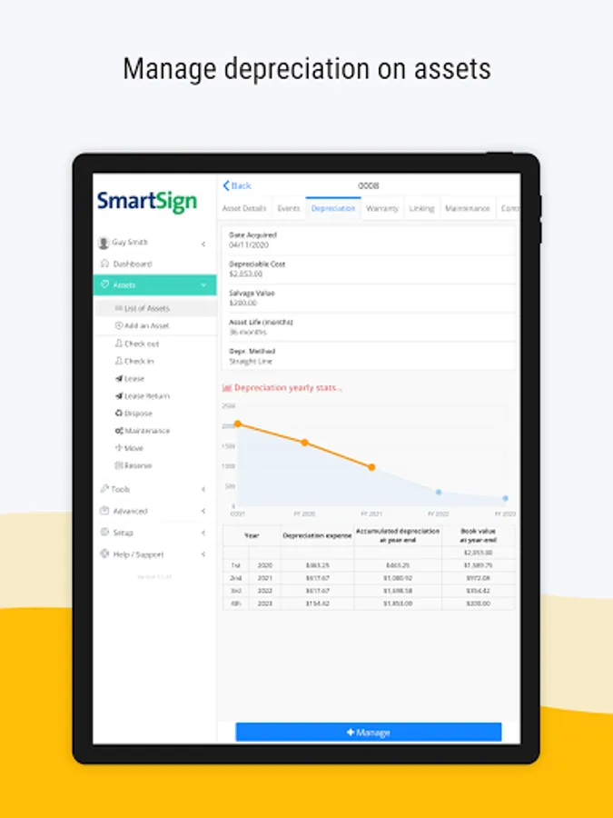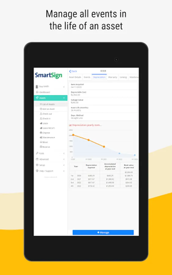 Start by inputting your assets into AssetTiger by uploading a database or adding them individually with the help of a scanner and once they are in the system, you can create financial reports tailored for your business. You can track depreciation, and you can set up alerts for all sorts of things. For example lease or warranty expiration, when maintenance is required, and when assets that you lent our are due for check in.