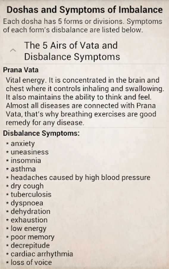 - Ayurvedic recommendations on yoga and breathing exercises (pranayama)