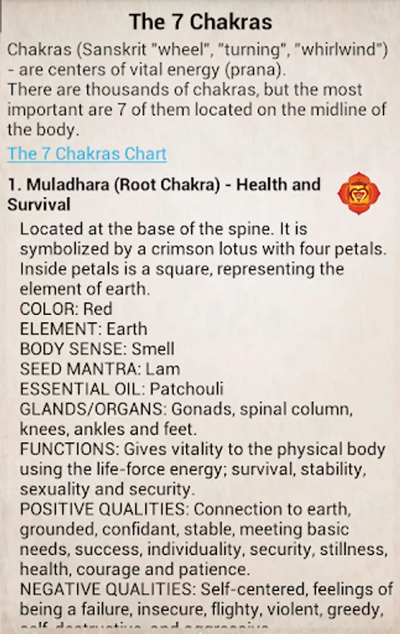 - The 7 chakras chart