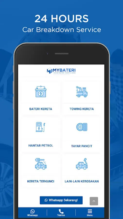 Serahkan kepada yang pakar, kami sedia membantu anda 24/7. MyBateri menyediakan pelbagai jenis servis berkaitan kenderaan seperti menukar bateri kereta, hantar petrol, tayar pancit, towing kereta, kereta terkunci, lain-lain kerosakan.