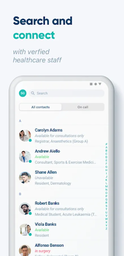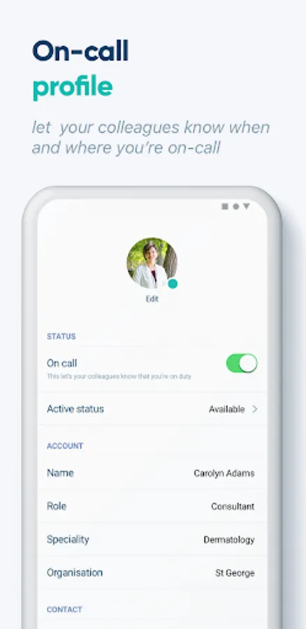 • Search for 'On Call' doctors instantly and set yourself 'On Call'