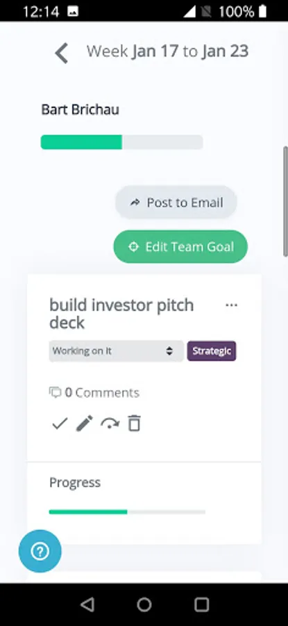 Enter 5 weekly goals that align with your company objectives, and you will be more engaged. Your company will have better profits because of better directional alignment of personal goals and company objectives. You are in charge of your performance reviews and they will be fact based and objective. Artificial intelligence will help you selecting the best weekly goals. AI will also create dashboards and reports, forecasting better profits and increased employee engagement.
