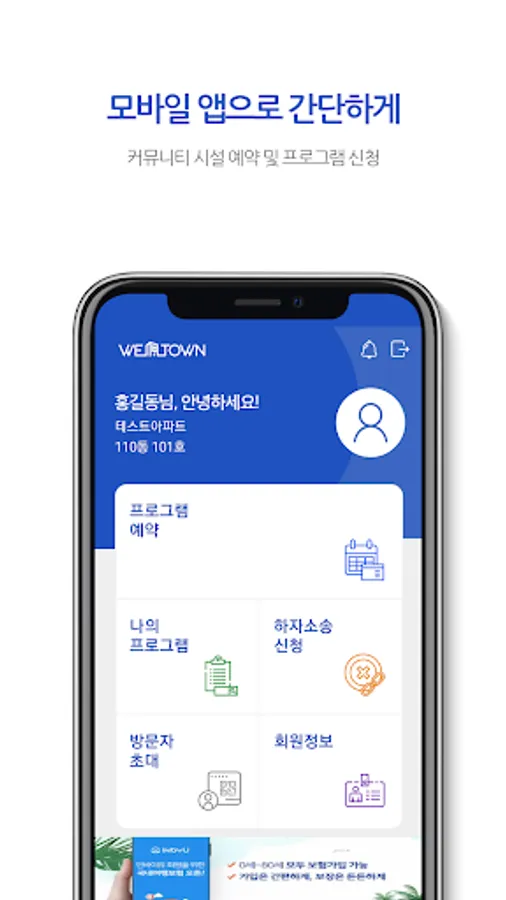 We Town app provides a variety of convenience features to residents using a smartphone.