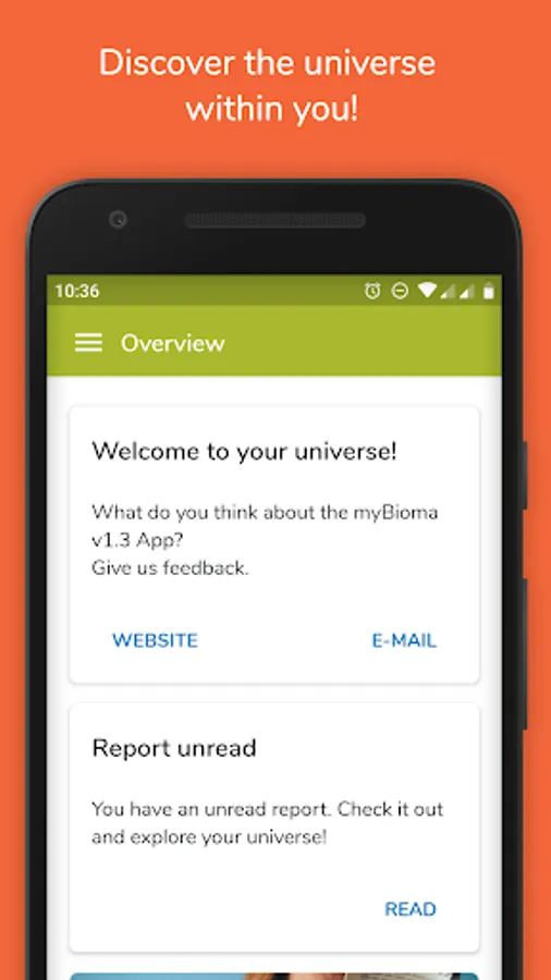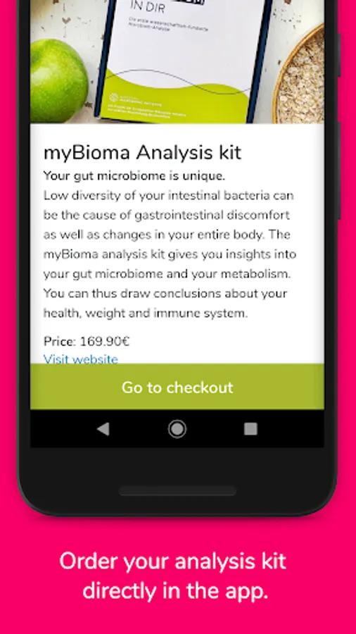 To use the full scope of the app, order a myBioma intestinal microbiome analysis now at www.mybioma.com or in the myBioma app.