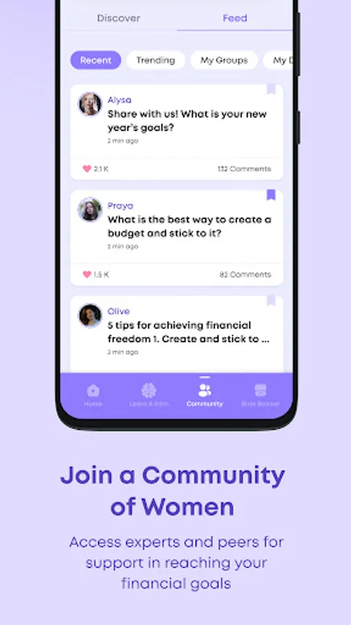 Access peer support and expert advisors through our Community Platform. Connect with friends and other Bixie users to hold each other accountable and achieve your financial goals together.