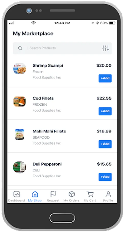 2. Setup your products – Sell/Purchase You can setup your products and also have the capability to set buyer specific pricing. Once connected all of your buyers can purchase from you through MyBiZSquare. Buyers will see one shopping page with the products from all their vendors on one page, without having to worry about multiple ordering systems/processes.