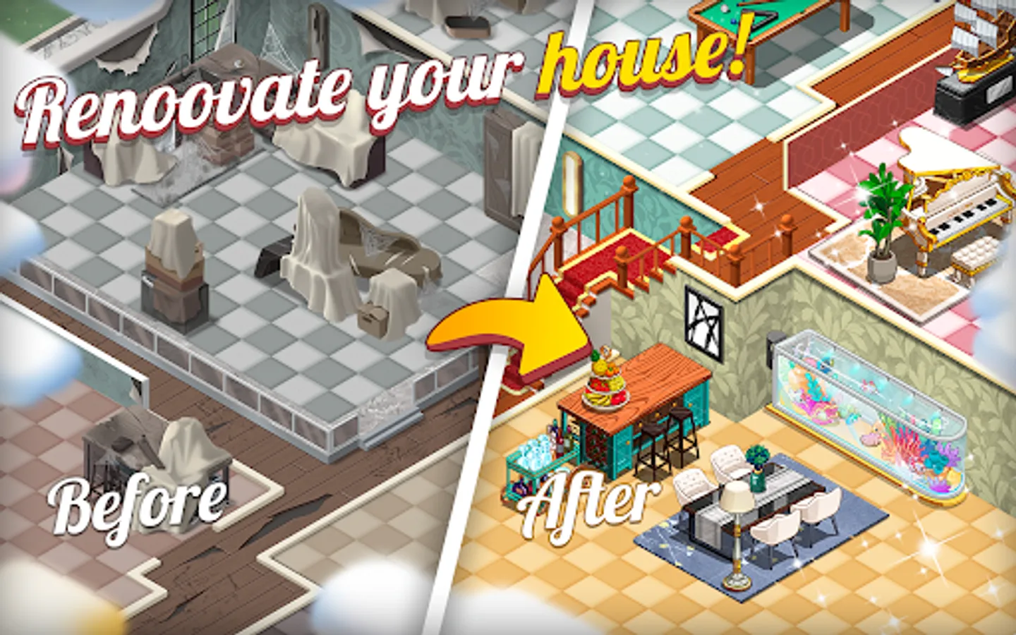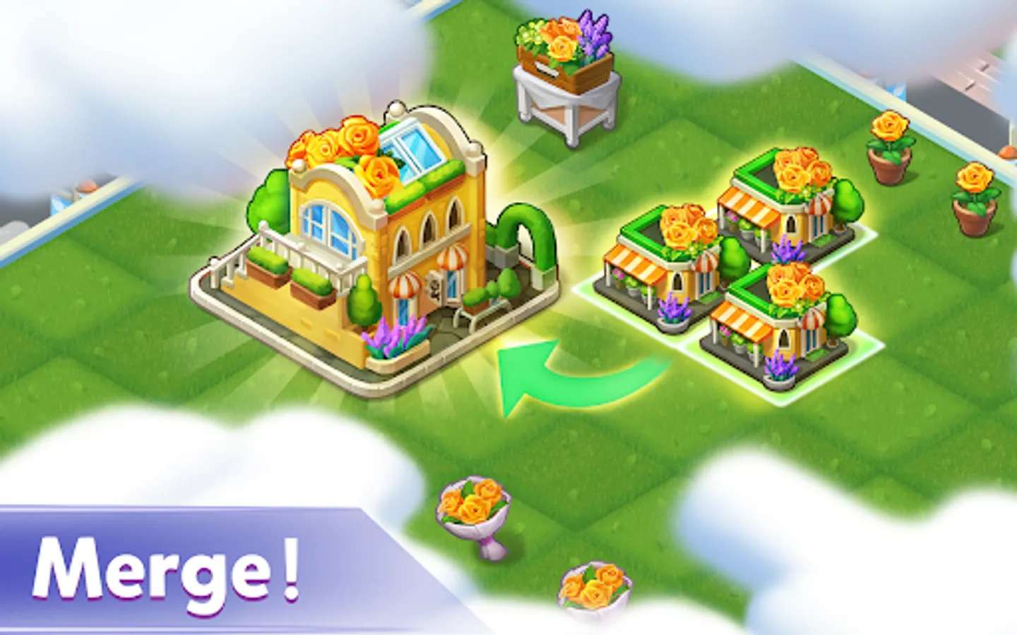 Easy to Start - Just swipe the screen to merge any objects! Use them to build the trendiest villa on a super-large map!