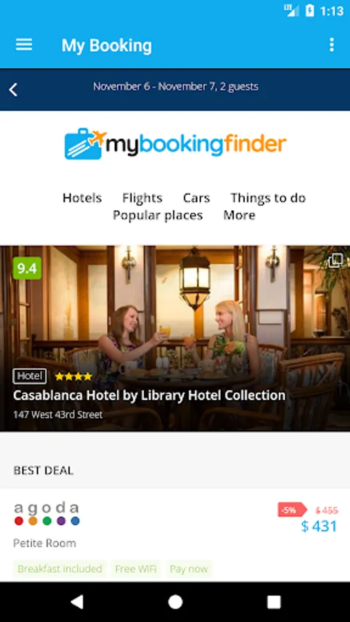 My Booking it’s a booking app that compare tones of online hotel reservation agencies to find the lowest price and the highest quality as possible, also you can use our app to compare and book cheap flights anytime.